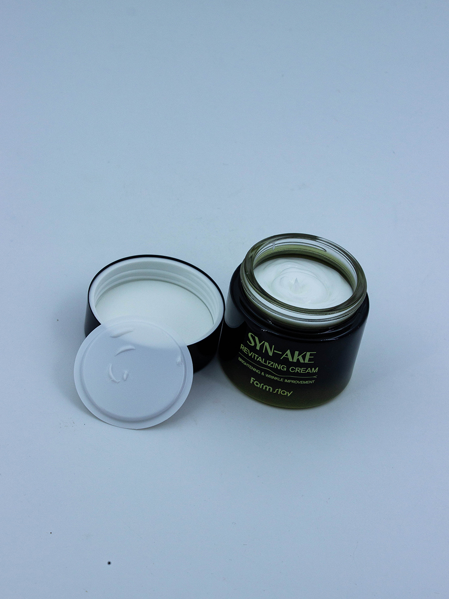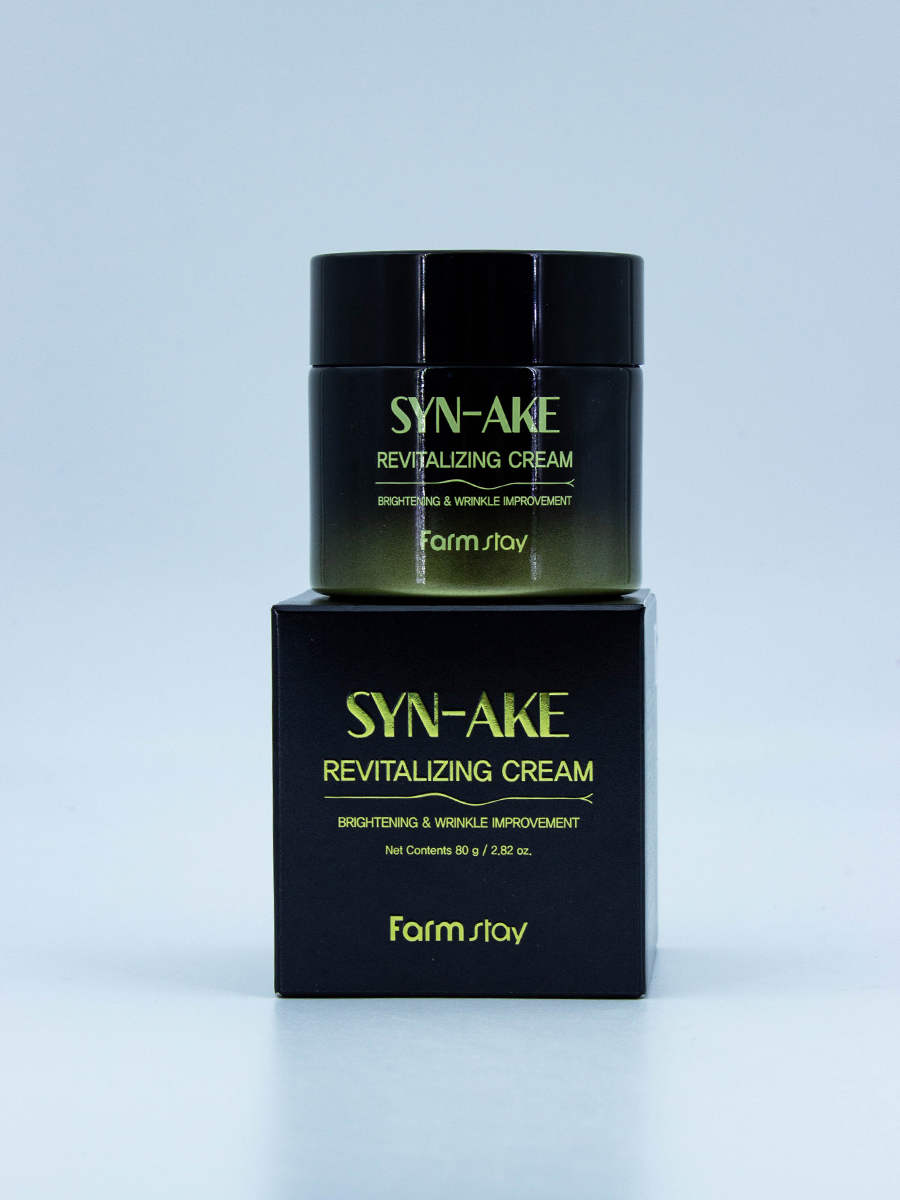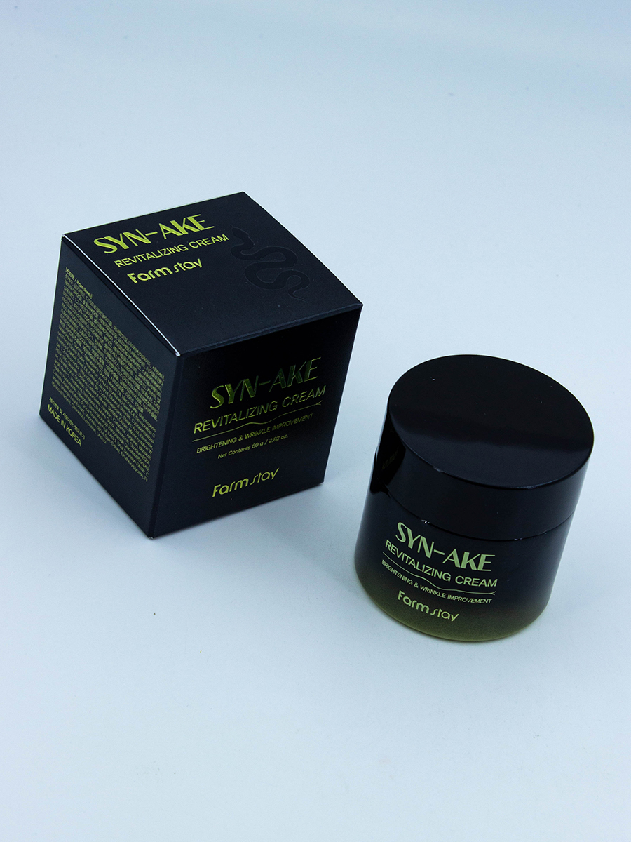 Лифтинг-крем со змеиным пептидом Syn-Ake FarmStay Syn-Ake Revitalizing Cream оказывает комплексное антивозрастное воздействие: предотвращает появление мимических морщин и уменьшает их глубину, отбеливает нежелательную пигментацию и выравнивает тон, уплотняет и подтягивает, укрепляет защитный барьер.