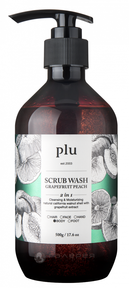 Water, Ammonium Laureth Sulfate, Ammonium Lauryl Sulfate, Acrylates Copolymer, Glycerin, Dipropylene Glycol, Cocamidopropyl Betaine, Coco-glucoside, Fragrance, Juglans Regia (Walnut) Shell Powder, Citrus Paradisi (Grapefruit) Fruit Extract, Prunus Persica (Peach) Fruit Extract, Citrus Aurantium Dulcis (Orange) Fruit Extract, Punica Granatum Fruit Extract, Disodium EDTA, Sodium Hydroxide, Phenoxyethanol
