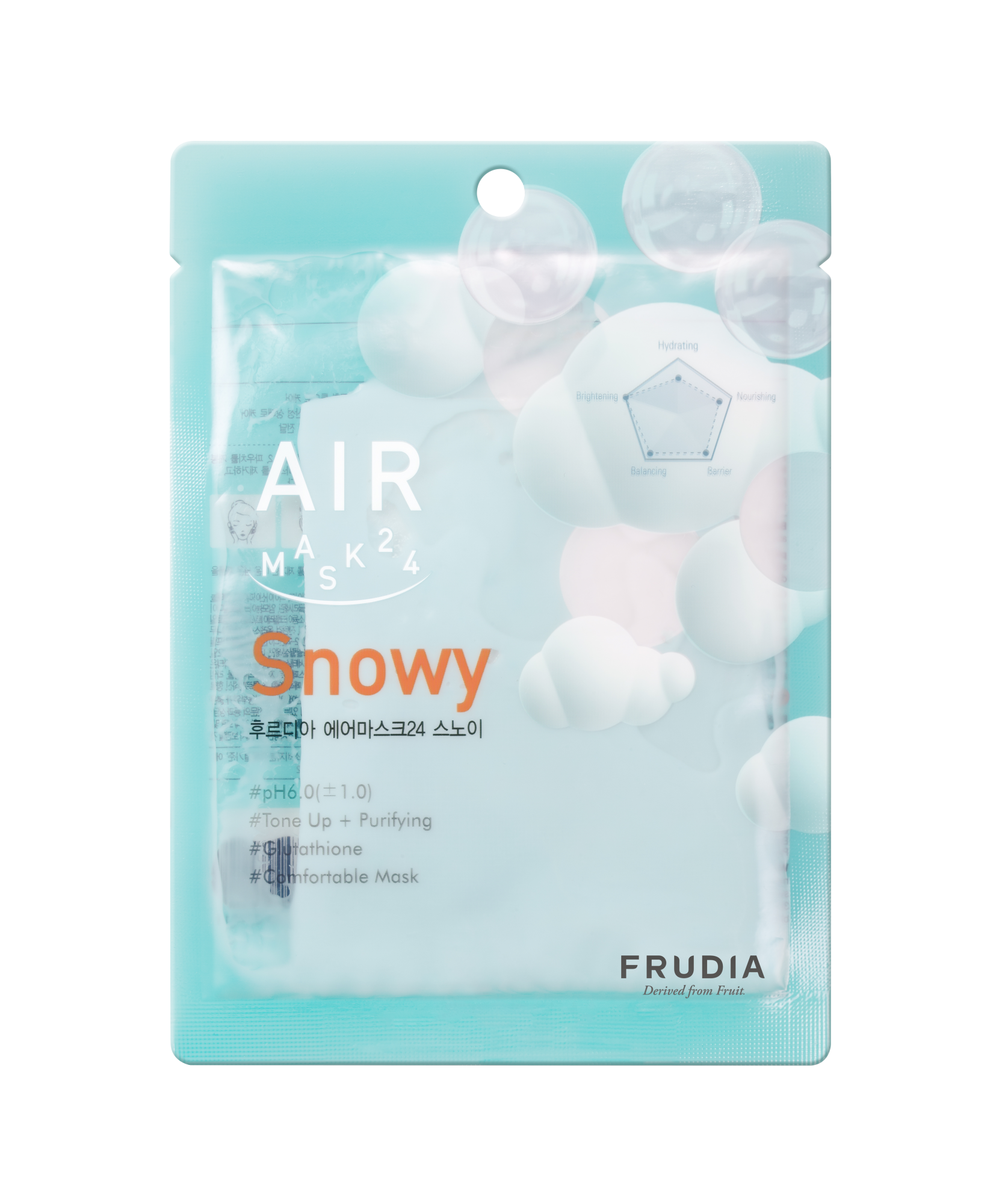 Маска с уровнем pH 6,0 (± 1,0) содержит фруктовые кислоты, бережно обновляющие кожу, придавая тусклой и уставшей коже здоровое сияние. Глютатион и ниацинамид выравнивают тон, одновременно смягчая и увлажняя.