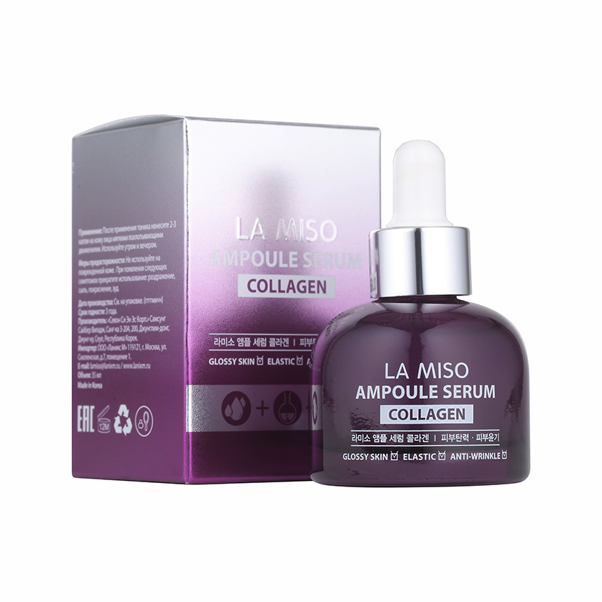 Гидролизированный коллаген в составе сыворотки насыщают кожу питательными веществами и борется с возрастными изменениями кожи: потеря упругости и эластичности, тусклый цвет лица, морщины. Сыворотка содержит комплекс активных компонентов, которые эффективно заботятся о коже лица: