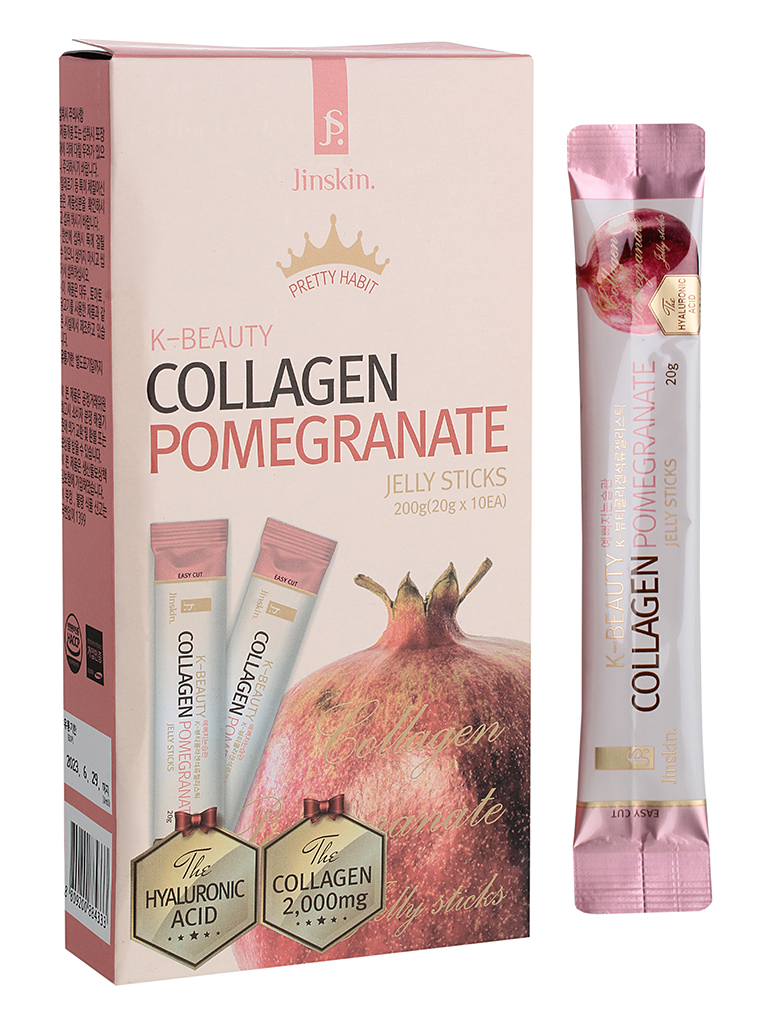 Коллагеновое желе с гранатом Jinskin Collagen Pomegranate Jelly Sticks — это заряд полезных веществ для молодости кожи и здоровья костей и суставов! Вкусное желе помогает улучшить состояние ногтей и волос, помогает бороться со старением. Богатый коктейль включает в себя низкомолекулярный коллаген, гиалуроновую кислоту, витамин С и концентрат граната.